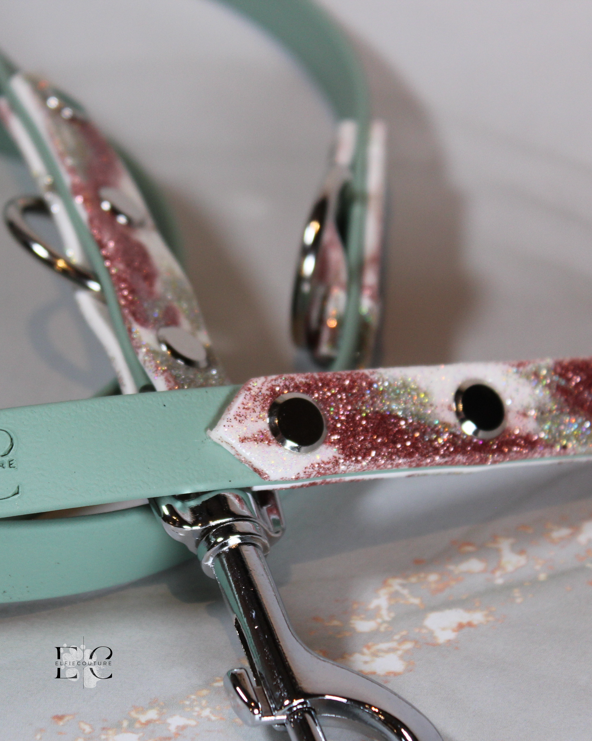 Wähle die Biothane-Farbe, die durch den Glitzer sanft durchscheinen darf.